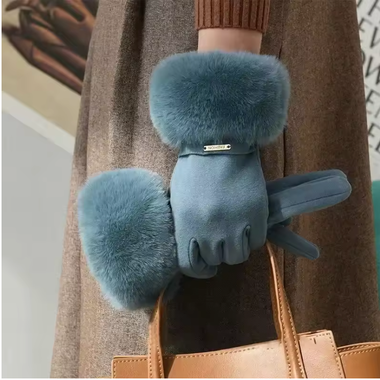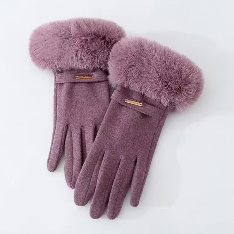 These gloves embody refined elegance, with a smooth, velvety texture and a luxurious faux fur cuff that adds a touch of sophistication. Ideal for keeping warm on chilly mornings or evening walks, they provide a classic sense of luxury that enhances any outfit.