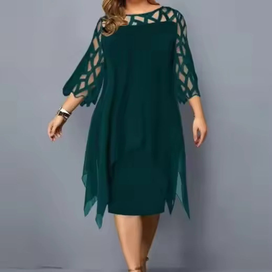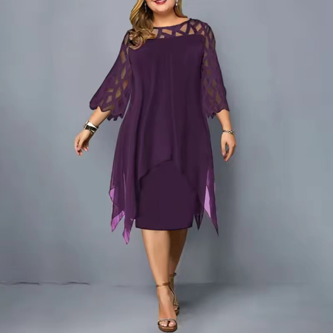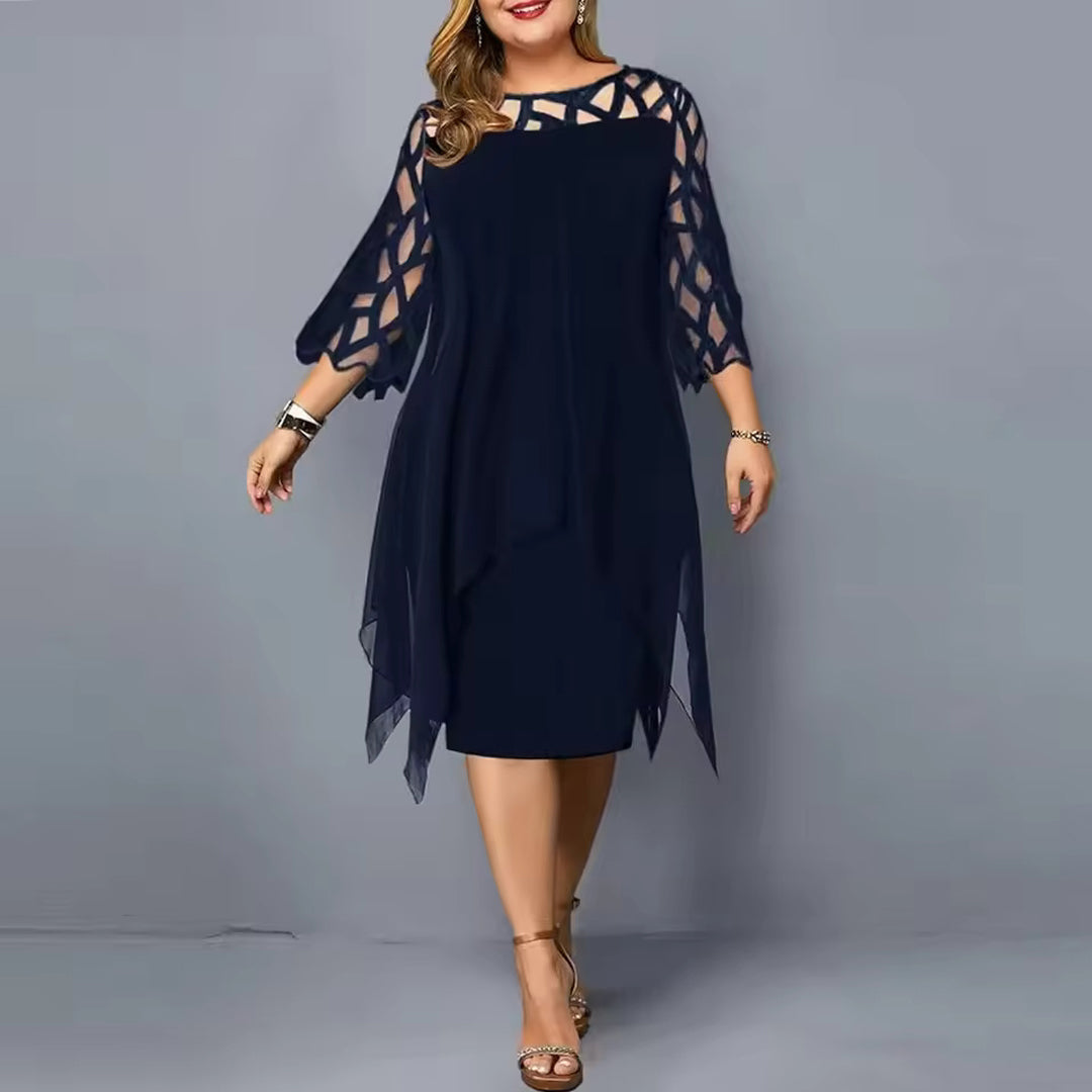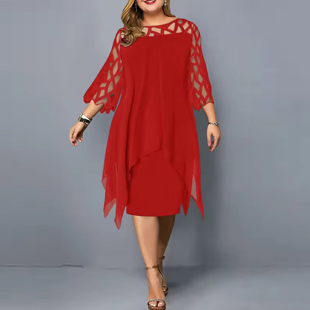 Serelina Plus Size Midi Dress is a plus-size chiffon midi dress with a floaty outer layer and elegant cutout sleeves. Designed to move with you, it offers structure-free comfort while gently shaping your figure.