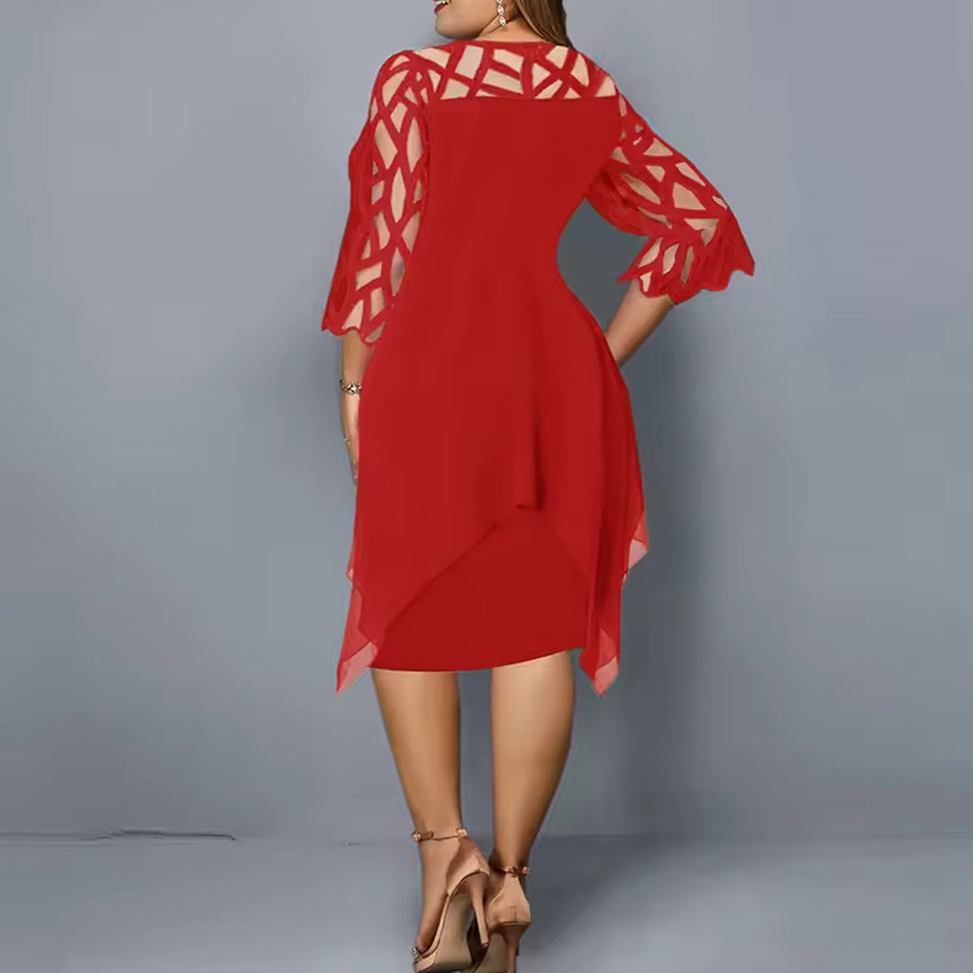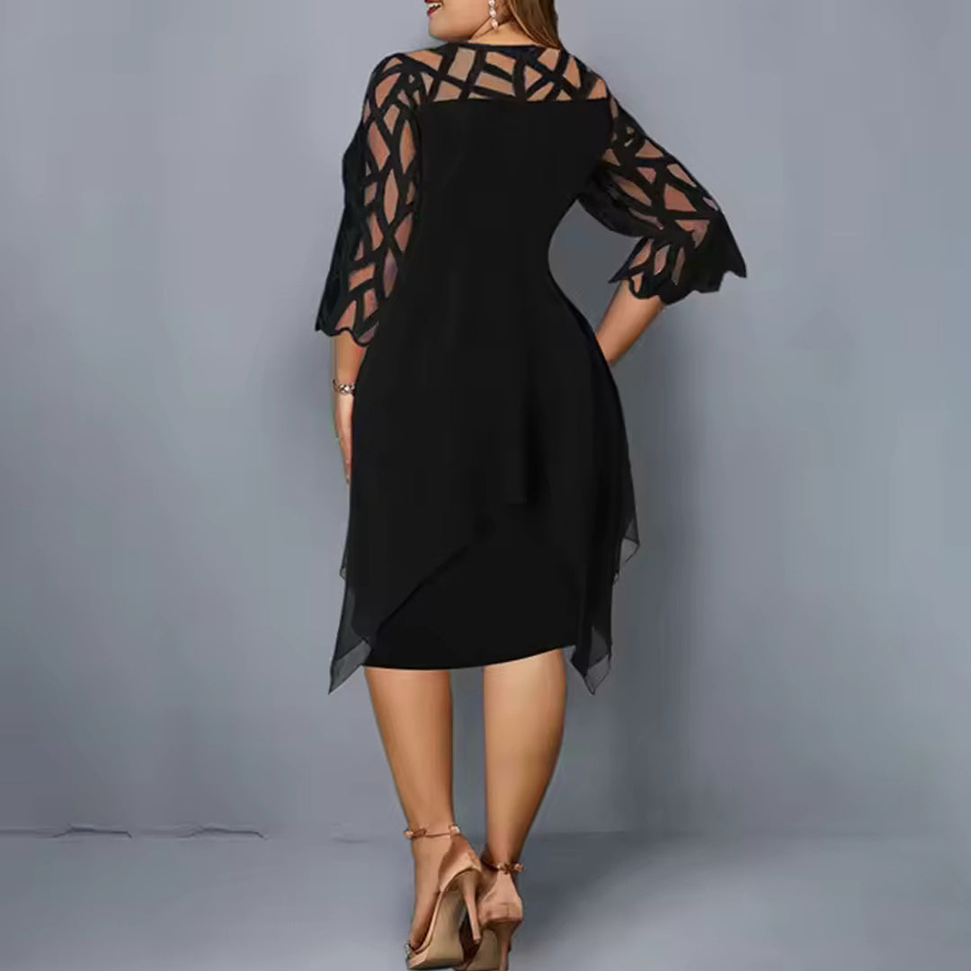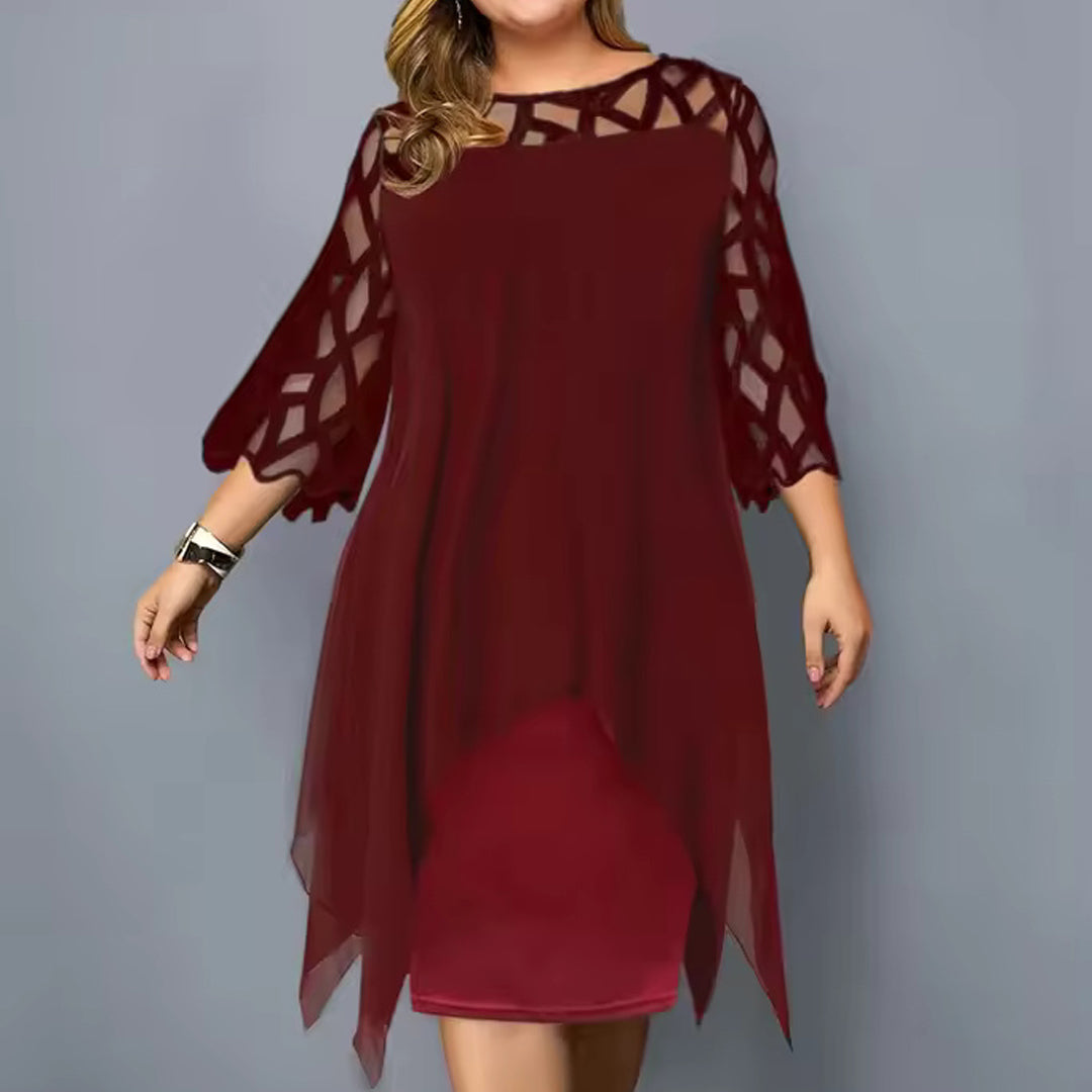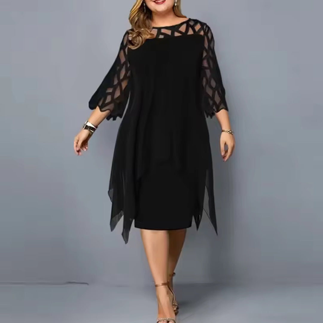 Serelina Plus Size Midi Dress is a plus-size chiffon midi dress with a floaty outer layer and elegant cutout sleeves. Designed to move with you, it offers structure-free comfort while gently shaping your figure.