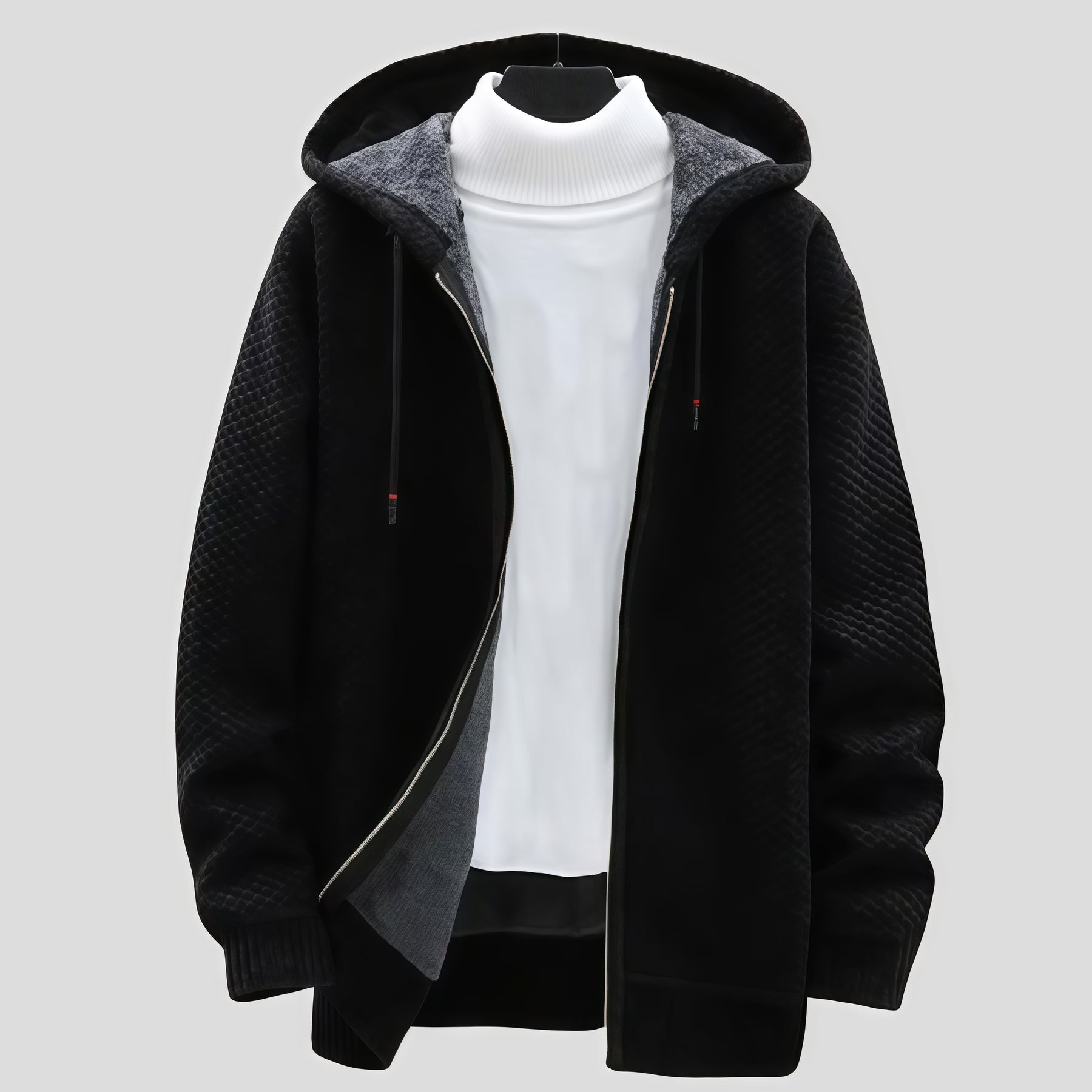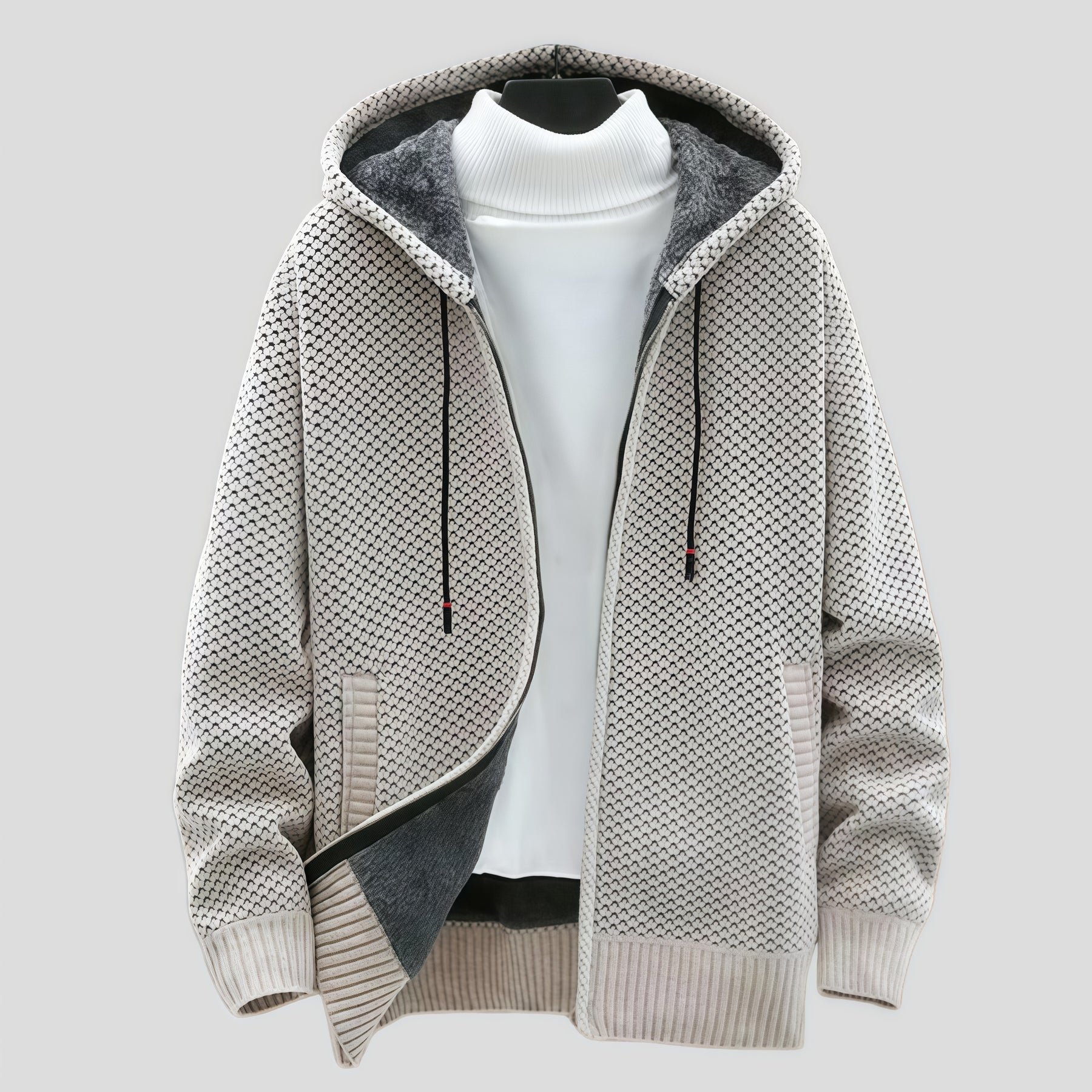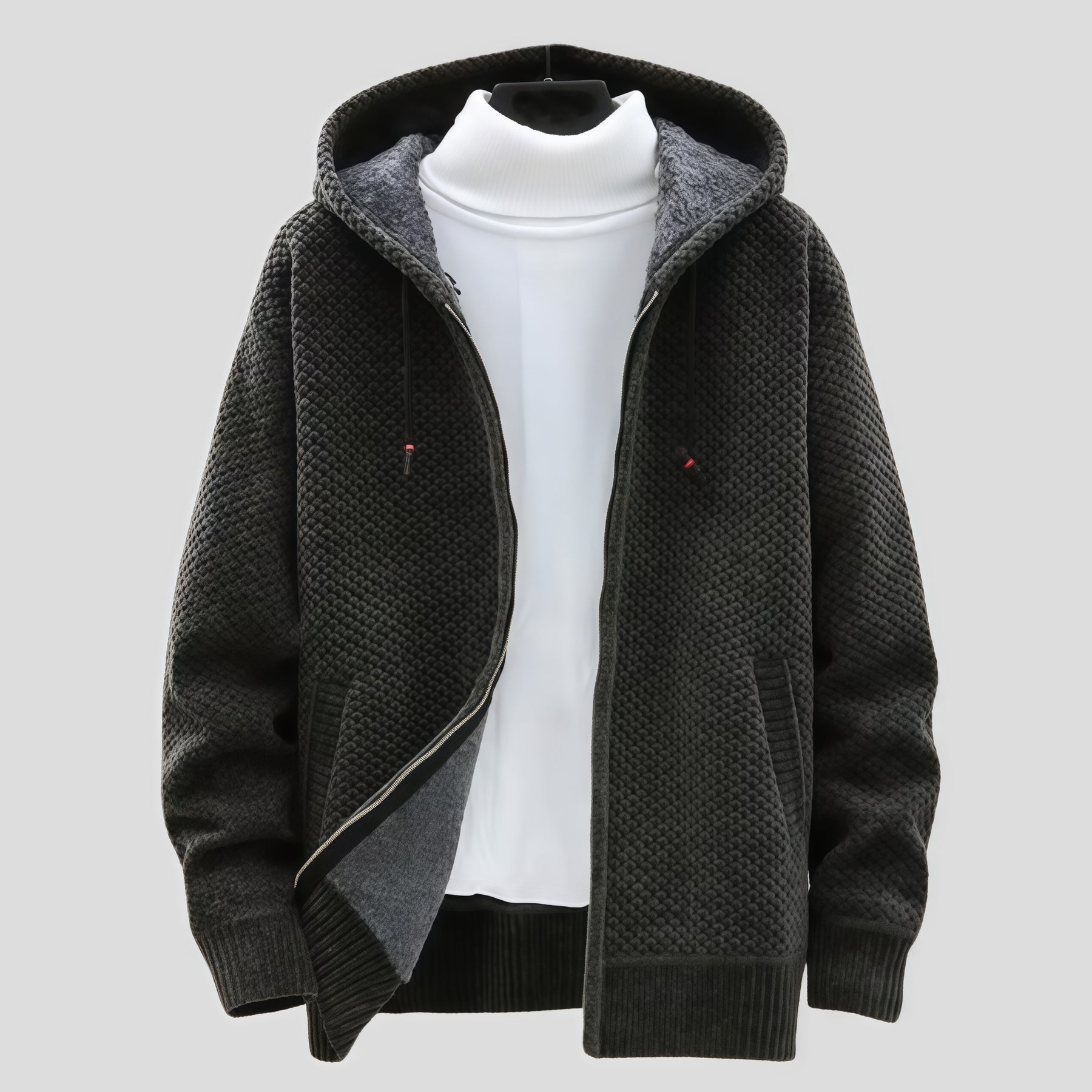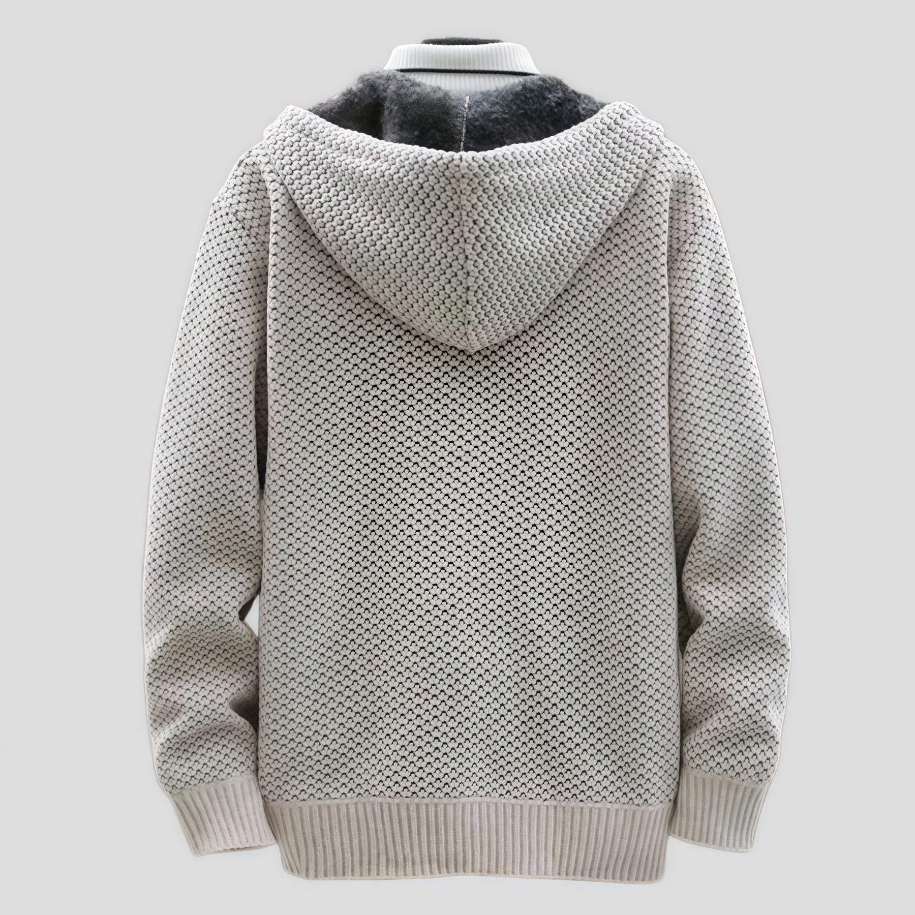 Nordic Haven Knit Hoodie is a cold-weather essential that combines a cozy fleece lining with a structured knit design for exceptional warmth. The zip-up closure allows for easy layering, making it a perfect choice for casual comfort.