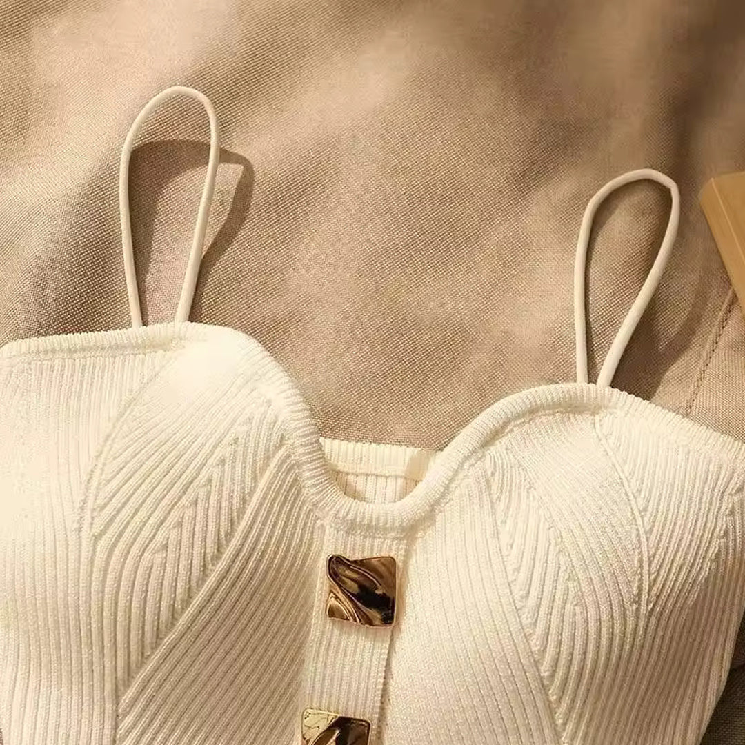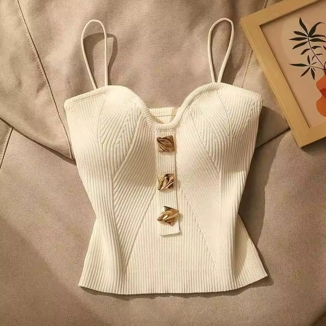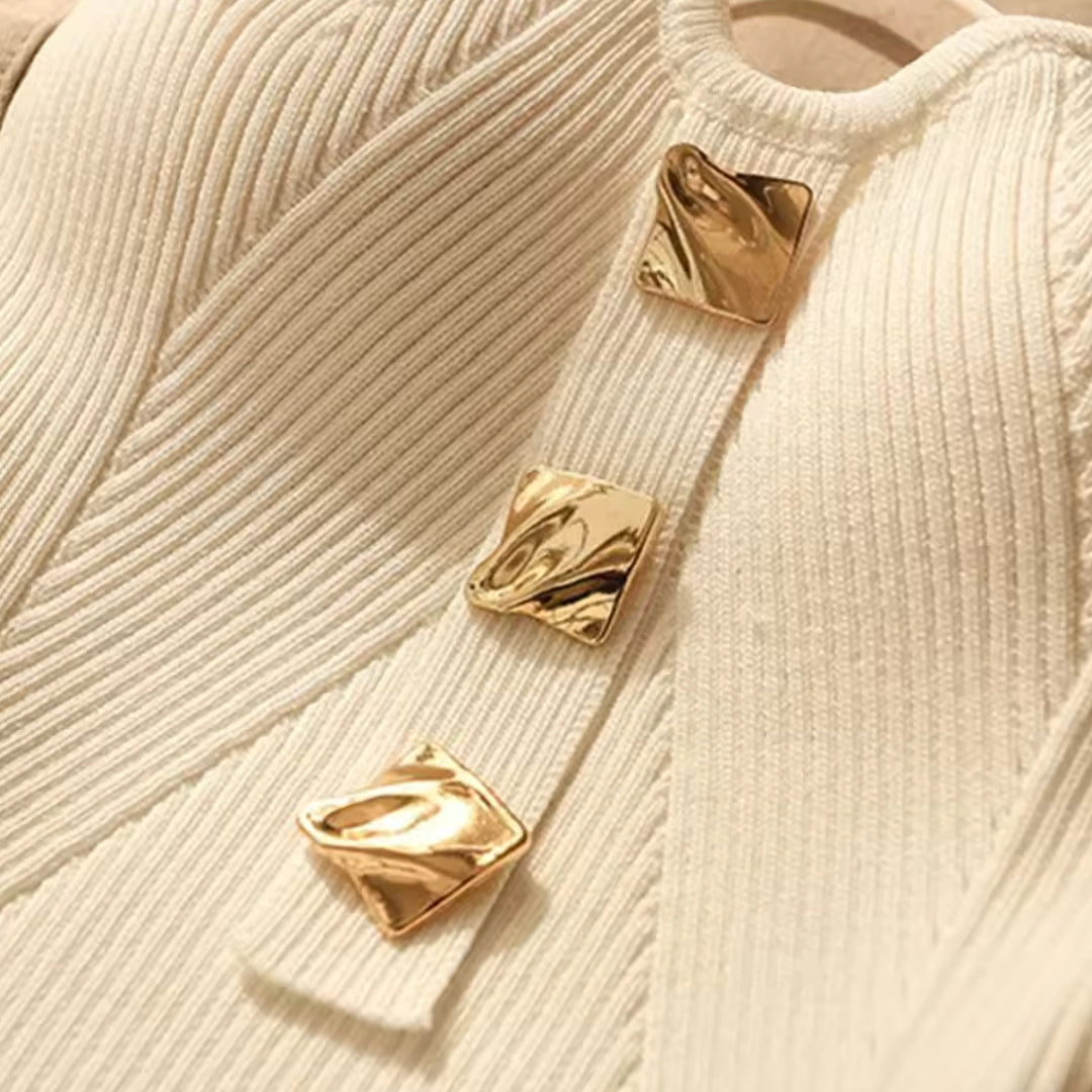 Virella Cropped Knit Top - designed in luxe stretch-knit with a close fit, this top is accented with gold buttons that elevate the look from simple to statement. It combines sculpted structure with soft texture for a refined finish.