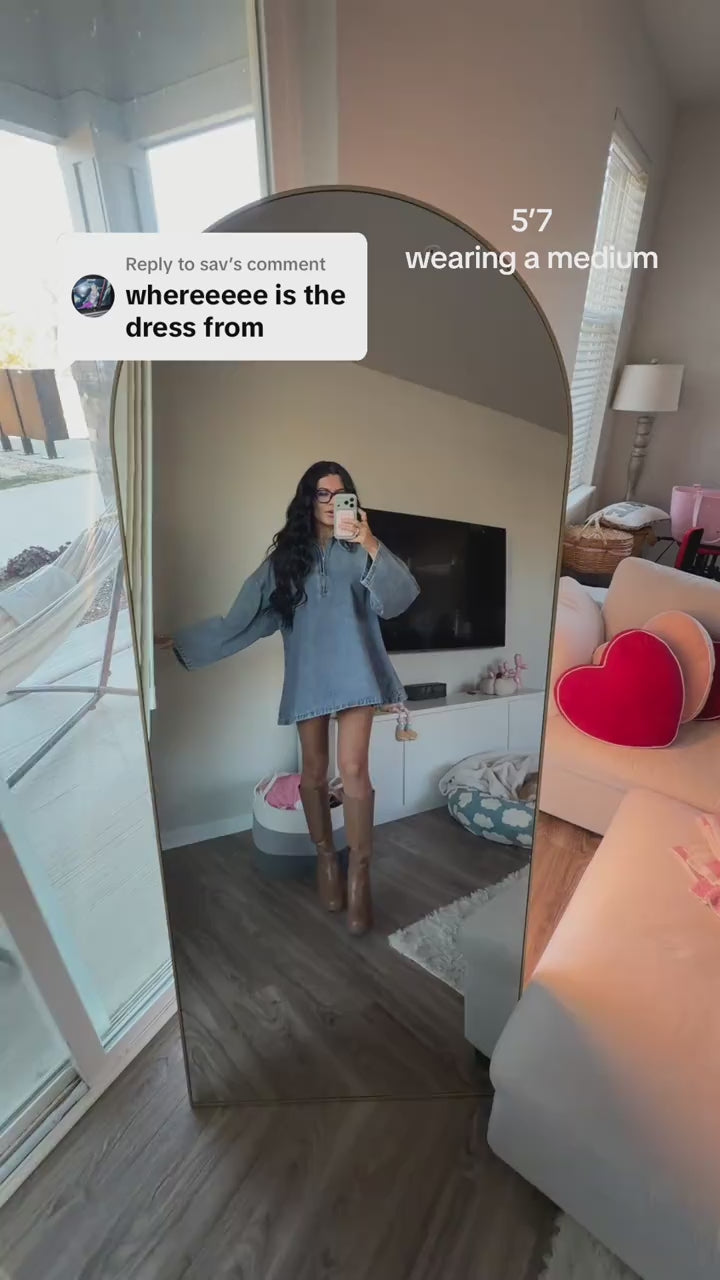 The dress is designed with a relaxed loose-fit silhouette that works well for different body shapes. We recommend choosing your usual size, as the cut provides comfortable room through the sleeves and body without feeling too oversized.