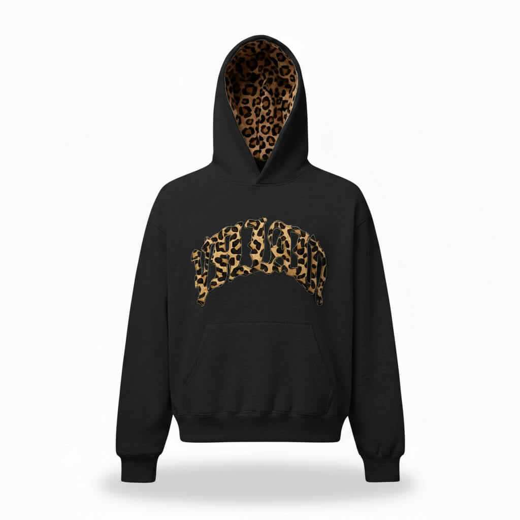 That leopard detail inside the hood? Genius. It’s giving cozy streetwear perfection.