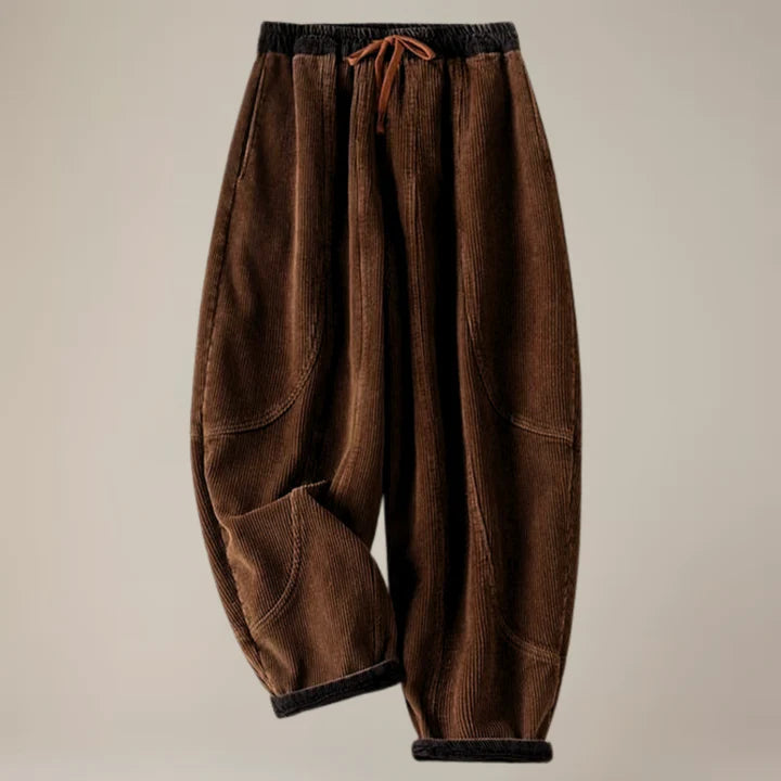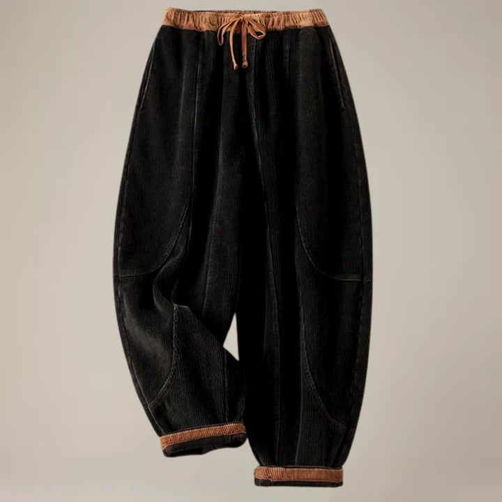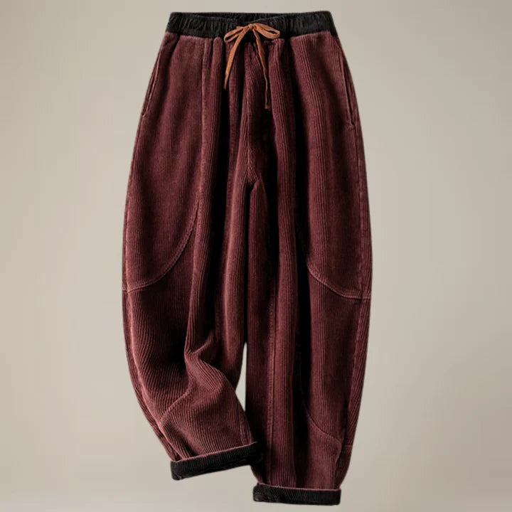 Piero Corduroy Pants bring warmth and texture with thick corduroy fabric, while a loose harem cut and elastic waistband ensure easy movement and all-day comfort. Designed for casual wear, they’re perfect for cooler autumn and winter days.
