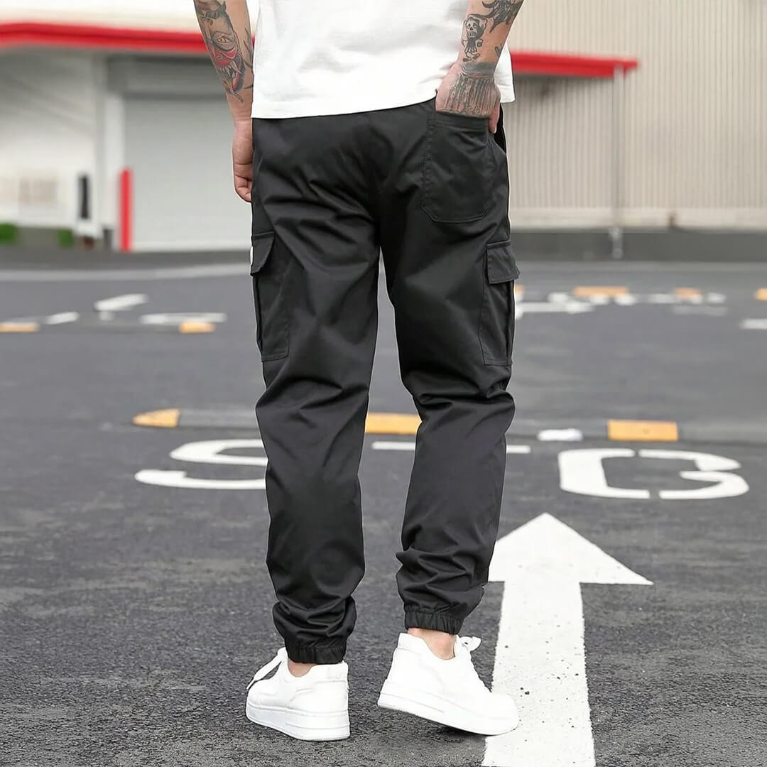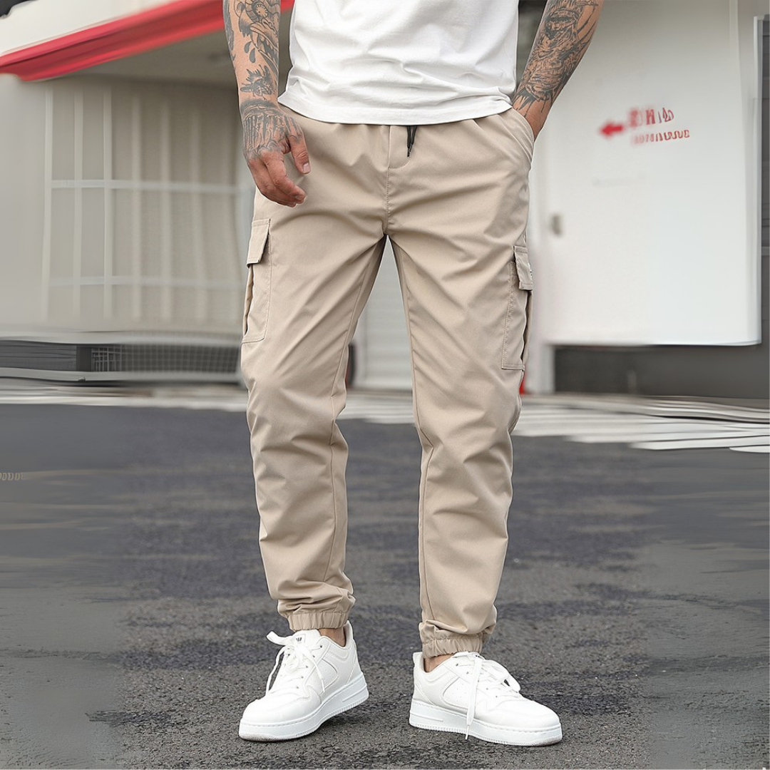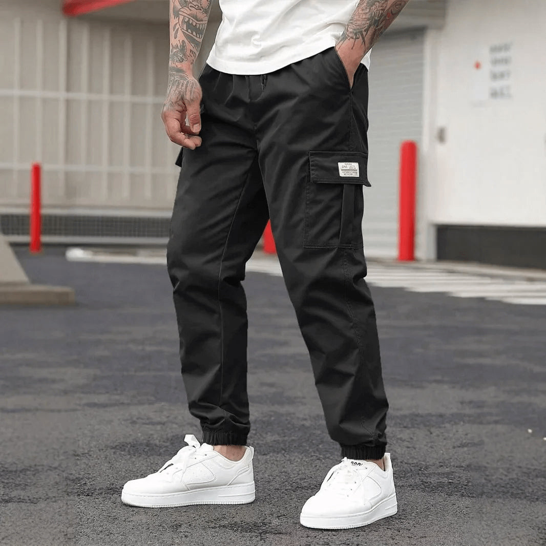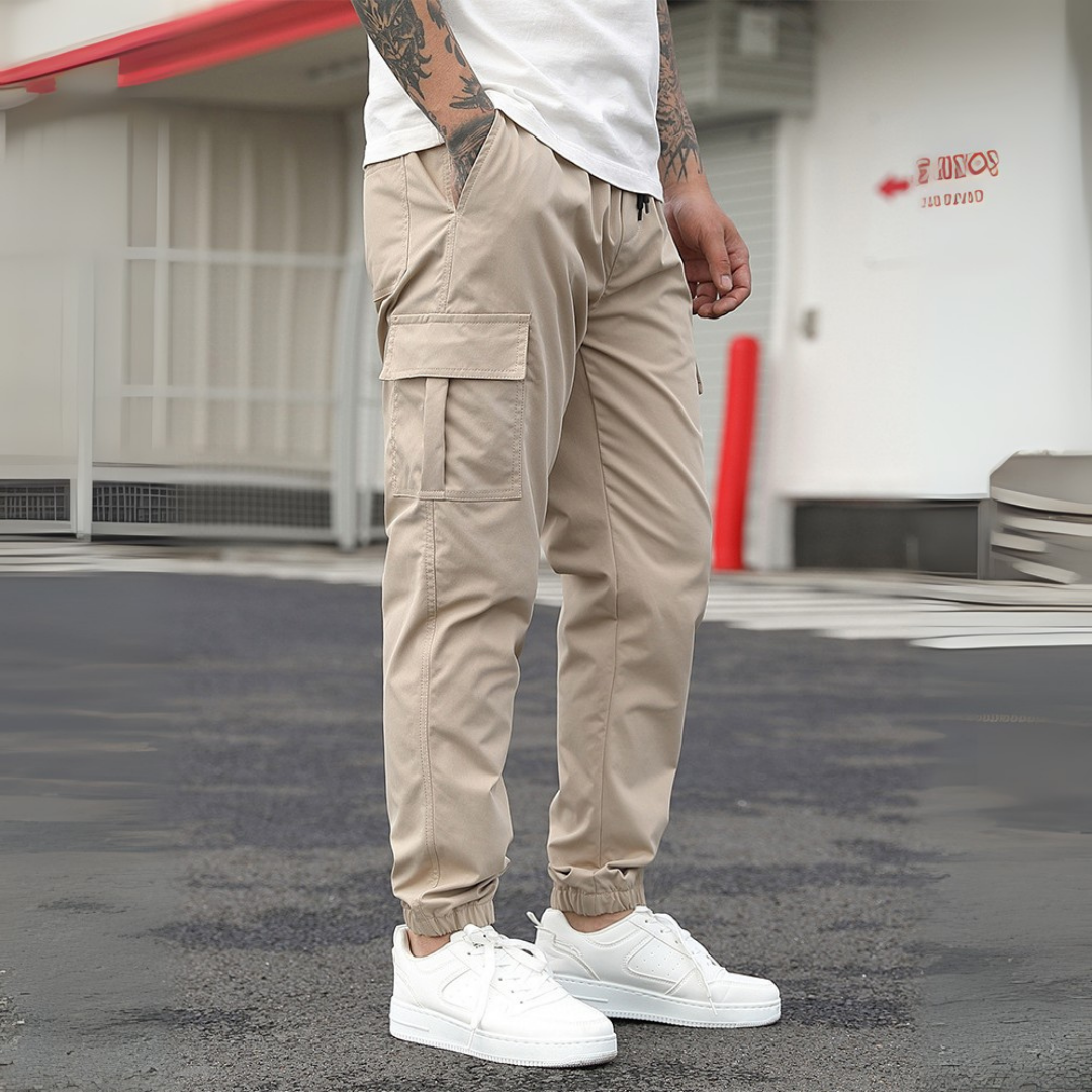 Riven Cargo Pants combine modern jogger style with practical details. A drawstring waistband, cuffed ankles, and functional pocket create a clean, versatile look designed for movement and daily wear.