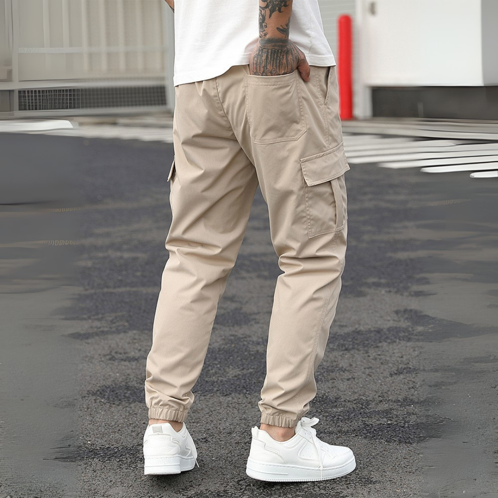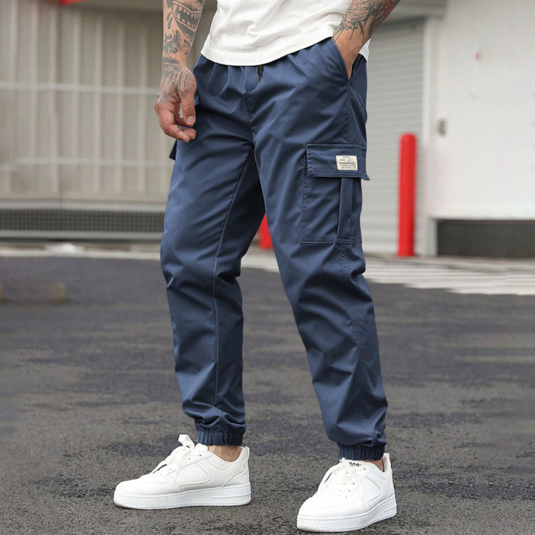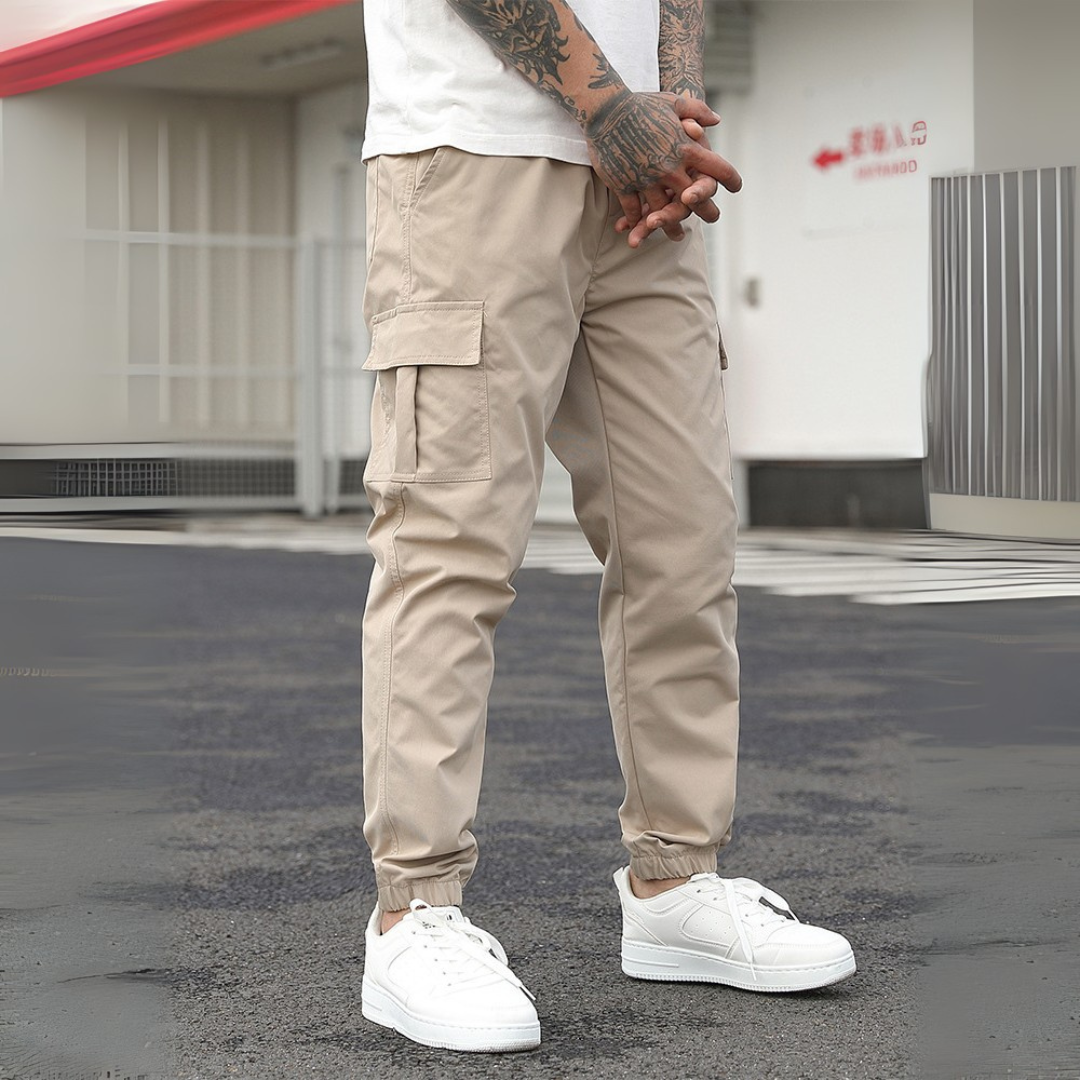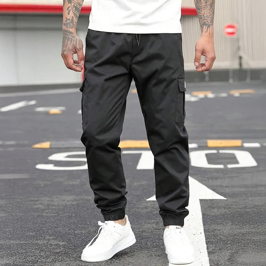 Riven Cargo Pants combine modern jogger style with practical details. A drawstring waistband, cuffed ankles, and functional pocket create a clean, versatile look designed for movement and daily wear.